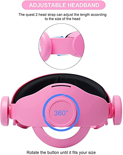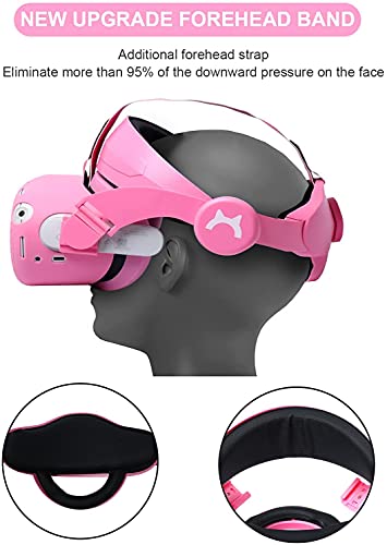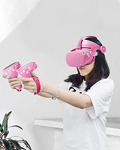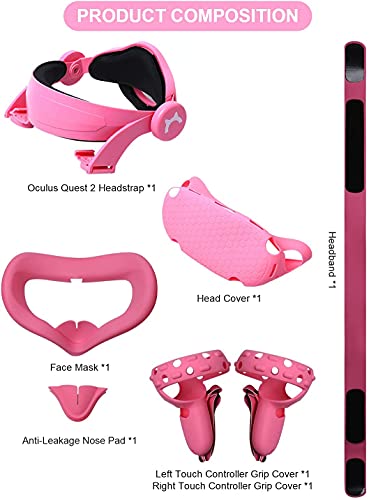 MoDJUEGO 2021 - Cinghia per testa per Oculus Quest 2, regolabile, con impugnatura in silicone per controller touch touch, cover per viso e VR Shell di ricambio (rosa)