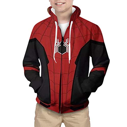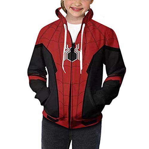 MODRYER Unisex Miles Morales Spiderman Felpa con Cappuccio con Coulisse Bambini Pullover Bambini Zip Tuta Giacca Costume Cosplay di Halloween,XS/110cm