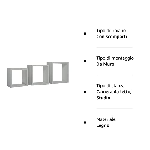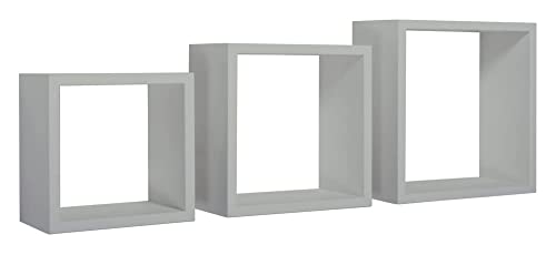 MODULARREDO | INCUBO Set di 3 Mensole da Muro, Cubi Arredo, Mensole Cubo, Cubi da Parete, 35x35 p15.5 cm 30x30 p15.5 cm e 25x25 p15.5 cm, Grigio Sasso, Kit Tasselli Incluso - Made in Italy
