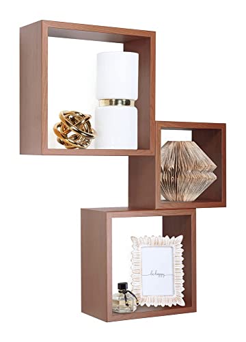 MODULARREDO | INCUBO Set di 3 Mensole da Muro, Cubi Arredo, Mensole Cubo, Cubi da Parete, 35x35 p15.5 cm 30x30 p15.5 cm e 25x25 p15.5 cm, Ciliegio - Made in Italy