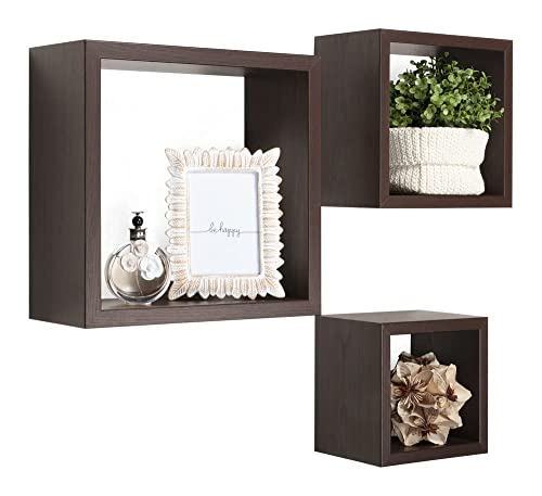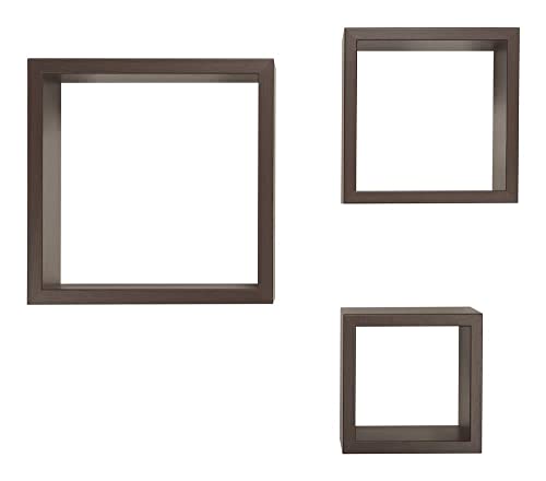 MODULARREDO | RUBIC Set di 3 Mensole da Muro, Cubi Arredo, Mensole Cubo, Cubi da Parete, 35x35 p15.5 cm 25x25 p15.5 cm e 20x20 p15.5 cm, Wengè, Kit Tasselli Incluso - Made in Italy