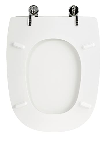Cerniere in metallo cromato regolabili a 360°: le cerniere possono essere regolate secondo le proprie necessità e permettono al sedile di essere compatibile con i WC più comuni.