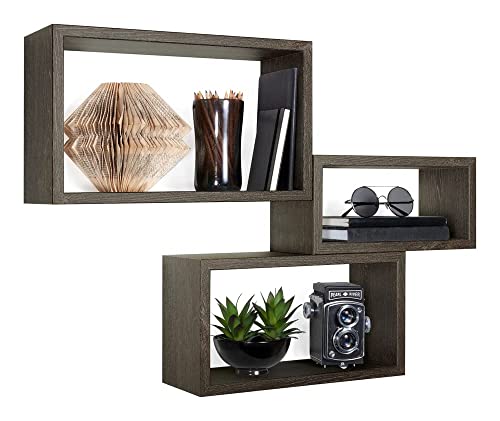 MODULARREDO | TRITTICO Set di 3 Mensole da Muro, Libreria Sospesa, Libreria Parete, Scaffale Parete, Rovere Scuro, 45x27 p15.5 cm, 40x22 p15.5 cm e 35x17 p15.5 cm - Made in Italy