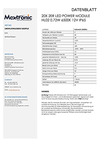 20x 2er moduli di potenza HL02 0.72W 6500K 12V IP65 LED