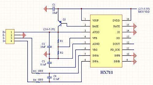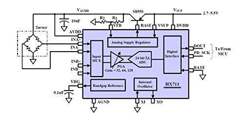 HX711 appositamente progettato per la progettazione della scala elettronica di alta precisione con due canali di ingresso analogici l'integrazione interna di 128 volte l'amplificatore di guadagno programmabile.