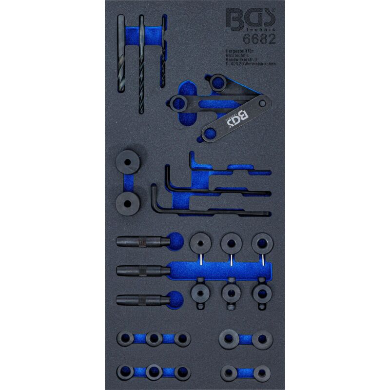 Per alesare tiranti a vite e viti M8 e M10 rotti o spanati Adatto per l'uso su avvitature di collettori di scarico, collettori di aspirazione, teste di cilindri, trasmissioni, differenziali, ecc. Utilizzabile anche su motori e alloggiamenti di autovetture, motociclette e veicoli commerciali Oggetto della fornitura: 1 calibro di alesaggio a 3 braccia, regolabile 1 manicotto di guida per punte da 4 mm 1 manicotto di guida per punte da 6,5 mm 1 manicotto di guida per punte da 8,5 mm 1 battuta d'arresto per punte da 4 mm 1 battuta d'arresto per punte da 6,5 mm 1 battuta d'arresto per punte da 8,5 mm 2 dadi esagonali M10 x 1,5 2 dadi esagonali M8 x 1,25 1 manicotto di allineamento M8 1 manicotto di allineamento M10 1 punta HSS 4 mm 1 punta HSS 8,5 mm 1 punta HSS 6,5 mm 3 manicotti di guida M8 3 manicotti di guida M10 3 perni di allineamento conici su entrambi i lati 1 chiave a brugola da 2 mm 1 chiave a brugola da 4 mm 1 chiave a brugola da 5 mm
