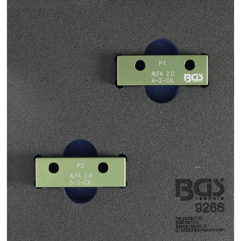 Per regolare/controllare la fasatura del motore da usare come OEM 1870859000 Adatto per: Alfa Romeo 147 / 156 / 166 / GTV / Spider GT con motore 2.0 16V JTS (165 CV) Oggetto della fornitura: Utensile per allineamento di alberi a camme di ingresso del 2° cilindro Utensile per allineamento di alberi a camme di scarico del 3° cilindro