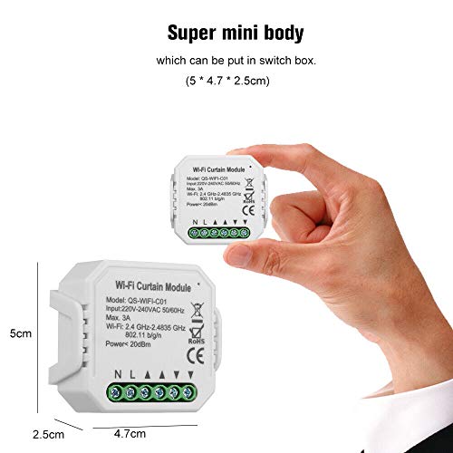 Modulo di controllo Smart WiFi wireless switch per tende tapparelle saracinesche compatibile Alexa, Google Home, Apple iOS, Android, IFTTT controllo vocale da incasso SmartLife e Tuya