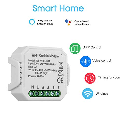 Controllo vocale: una volta che hai questo interruttore, puoi collegarlo ad Amazon Alexa o Google Home per il controllo vocale. Telecomando APP: l'utente può utilizzare uno smartphone per aprire / chiudere a distanza tende o porte elettriche in qualsiasi momento e ovunque tramite APP purché lo smartphone abbia una rete 3G / 4G / WiFi, godersi la comodità della vita intelligente.