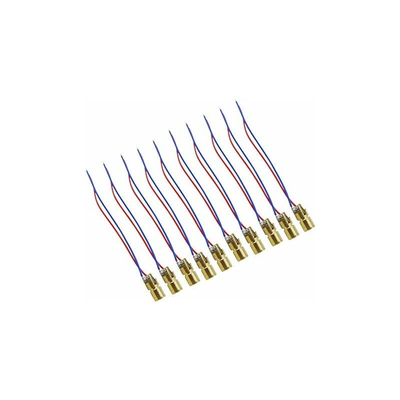 Tensione di lavoro: 3V Diametro esterno: 6 mm Lunghezza d'onda: 650 nm Corrente di funzionamento: deve essere inferiore a 20 Ma Forma del laser: Punto Descrizione: Lunghezza d'onda: 650 nm Tensione di lavoro: 3V Corrente di esercizio: deve essere inferiore a 20 mA Forma del laser: Punto Temperatura di lavoro: -10 gradi a 40 gradi Obiettivo e custodia: Plastica Dimensioni: 6 X 10 mm Il pacchetto include: Modulo a diodi laser 10 X 3V Colore: rosso + blu