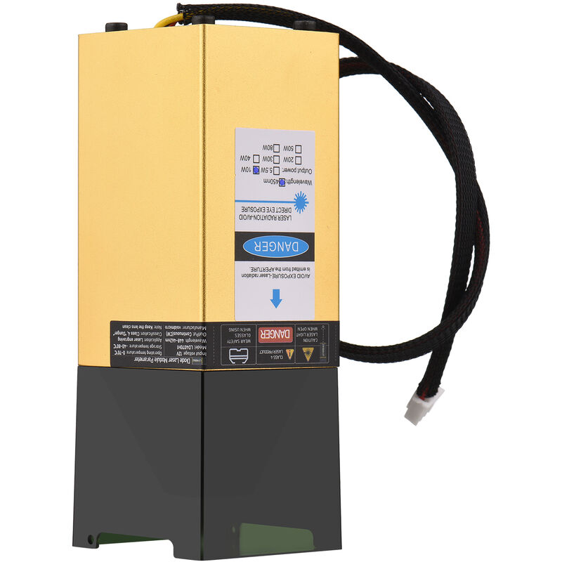 Modulo laser professionale, facile da installare, con perdite inferiori, fornisce una lunghezza d'onda di 450 nm, per un'incisione e un taglio efficienti e precisi di plastica, legno, pelle, carta e così via, adatto a un'ampia gamma di macchine per incidere. Nota: 1. Si prega di indossare occhiali laser durante l'uso ed evitare di toccare il laser direttamente con gli occhi e la pelle. 2. Le dimensioni e il colore possono essere leggermente diversi a causa della misurazione manuale e delle diverse condizioni di luce. Grazie per la comprensione. Specifiche: Potenza laser: 10 W/ 20 W/ 30 W/ 40 W/ 50 W/ 80 W (opzionale) Colore principale: oro Materiale principale: lega di alluminio + Componenti elettronici Lunghezza d'onda: 450nm Lunghezza focale: fissa Tensione in ingresso: 12V Uscita: continua ( CW) Temperatura operativa: 0~70℃ Temperatura di stoccaggio: -40~80℃ Dimensioni articolo: 125 * 47 * 44 mm / 4,92 * 1,85 * 1,73 pollici Peso dell'articolo: 238 g / 8,40 once Dimensioni