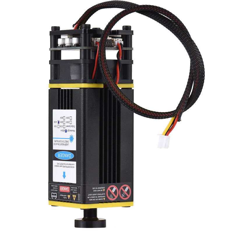 Modulo laser professionale, facile da installare, con perdite inferiori, fornisce una lunghezza d'onda di 450 nm, per un'incisione e un taglio efficienti e precisi di plastica, legno, pelle, carta e così via, adatto per un'ampia gamma di incisioni macchine. Nota: 1. Si prega di indossare occhiali laser durante l'uso ed evitare di toccare il laser direttamente con gli occhi e la pelle. 2. Le dimensioni e il colore possono essere leggermente diversi a causa della misurazione manuale e delle diverse condizioni di luce. Grazie per la comprensione. Specifiche: Potenza laser: 5,5 W/ 10 W/ 20 W/ 30 W/ 40 W (Opzionale) --Lunghezza focale regolabile: 5,5 W/ 10 W/ 20 W (20-70 mm)/40 (40-70 mm) --Lunghezza focale fissa: 30 W (12,6 mm)/40 W (15 mm) Colore: nero Materiale: lega di alluminio + Componenti elettronici Lunghezza d'onda: 450nm Colore luminoso: blu Tensione operativa: 12V Ingresso PWM/TTL: DC 3.3V-12V, 100Hz-50KHz Interfaccia di ingresso: XH2.54-3 Pin (+, -, PWM/TTL) Funzionamento