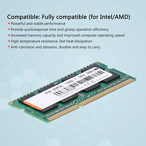Modulo di memoria DDR3L, 4 GB / 8 GB 1600 MHZ SODIMM RAM, PC3L-12800 204PIN 1.35 V Modulo di memoria per computer portatile Notebook RAM, completamente compatibile per Intel/AMD(4GB)