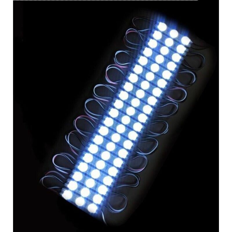 Modulo led 12v 20 strisce per insegne tabelle luce bianca ghiaccio Set da 20 strisce da 3 led cadauna con biadesivo sulla parte posteriore Caratteristiche: Modulo led a risparmio energetico Tipo di led:2835 Alimentazione: DC12V Consumo singolo led 1.2 watt Colore luce ghiaccio 13000K Protezione IP65 Dimensioni singola striscia: 6x1.5 cm