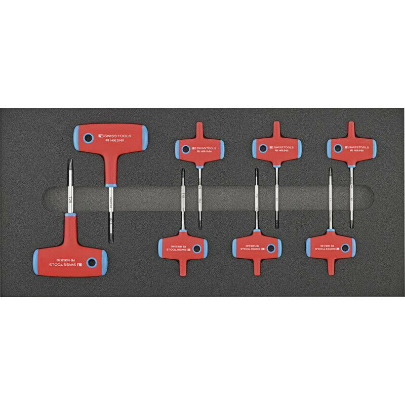 Modulo utensili Cacciaviti con impugnatura a croce per viti TORX® - Inserto in schiuma a 2 colori. Identifica a colpo d'occhio gli utensili mancanti Contenuto: 8 cacciaviti con impugnatura a croce per viti TORX® T 6. T 7. T 8. T 9. T 10. T 15. T 20. T 25