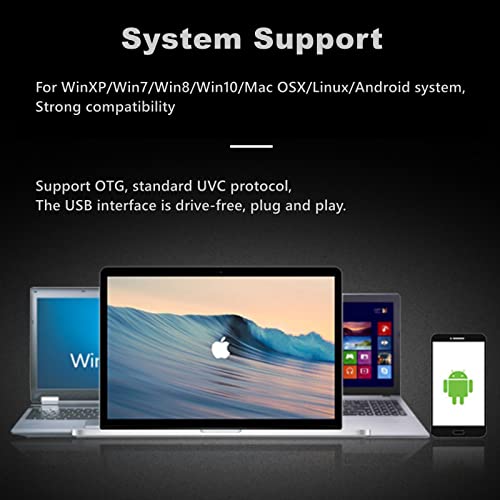 SUPPORTO DI SISTEMA -- per sistema WinXP/Win7/Win8/Win10/Mac OSX/Linux/Android, forte compatibilità, supporto OTG, protocollo UVC standard, interfaccia USB senza driver, plug and play.