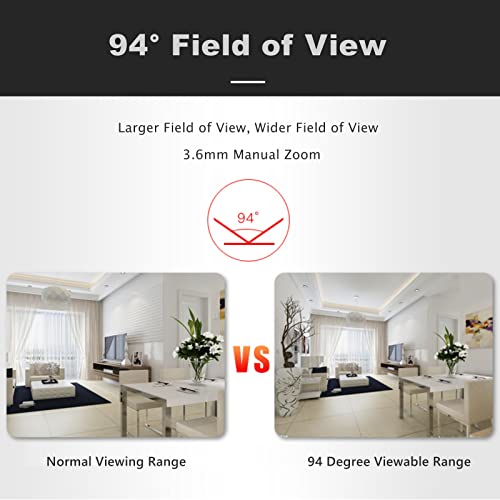 OBIETTIVO DA 3,6 MM -- obiettivo con messa a fuoco manuale, passaggio automatico tra giorno e notte (IR-CUT), visione notturna a infrarossi, adatto per riprese entro 10 m, il miglior effetto di imaging.