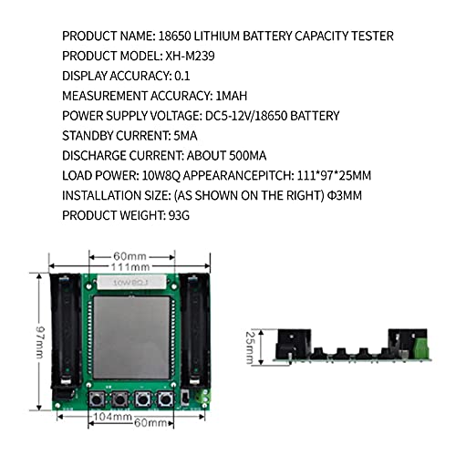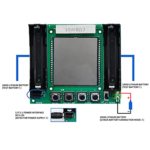 3. FUNZIONI MULTIPLE: il tester di capacità della batteria può testare la tensione, la capacità di scarica e l'energia di scarica delle batterie al litio 18650. Il modulo di capacità della batteria supporta due alimentatori funzionanti per il modulo, alimentato da una batteria DC 5V-12V (non inclusa)