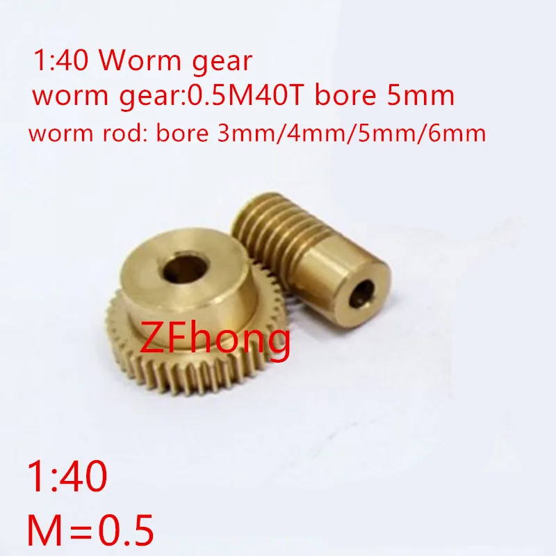 0.5 Modulus 40 Teeth Brass Worm Gear Wheel & 5mm Hole Dia Worm Gear rod Shaft Kits 1:40 Reduction Ratio with Screw