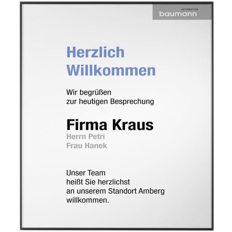 Questa targhetta informativa Black Line A3 della MOEDEL è un'indispensabile insegna informativa piatta autoadesiva da interni, con un inserto in carta intercambiabile che può essere personalizzato a seconda delle esigenze della vostra azienda. Ampia gamma di applicazioni: Questi cartelli infornativi possono essere utilizzati per la segnalazione delle sale o per una varietà di applicazioni in uffici, fabbriche, molteplici esercizi e numerose altre aree. Per un montaggio a vite e/o adesivo: Questa insegna informativa è davvero facile da montare sulla porta. Potete anche attaccarla alla porta o alla parete con il cuscinetto adesivo (non in dotazione). Per scritte su inserti in carta di 419,5x296,5 mm: Il cartello per porte è adatto per inserti in carta di circa 419,5x296,5 mm. C'è molto spazio per inserire informazioni, orari, avvisi, e persino informazioni di sicurezza. Rivestimento antiriflesso: Il rivestimento antiriflesso protegge l'inserto in carta senza ridurre la visibilità.