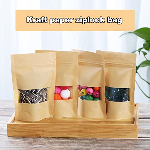 Moendergo La Carta Kraft Sta Sulle Borse Dell'alimento, Sacchetti Risigillabili di Stoccaggio Dell'alimento, Sacchetti Della Chiusura Lampo Marroni con la finestra trasparente(100, 9*14 cm)