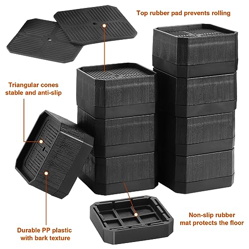 Moendergo Rialzo per mobili, 8 pezzi, rialzo per mobili, rialzo per il letto, rialzo per il divano, forte scaletta salvaspazio (nero A)