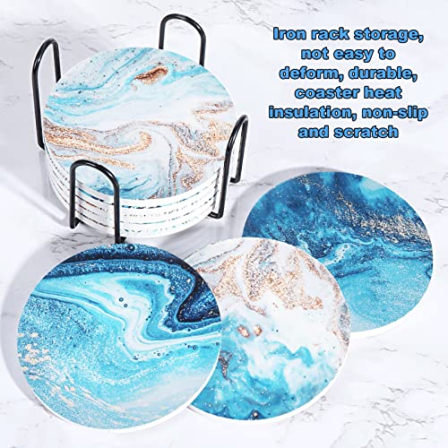 Moendergo 6 sottobicchieri per bevande, assorbenti, in sughero, in ceramica, con supporto in metallo per casa, cucina, camera, bar, decorazione (6)