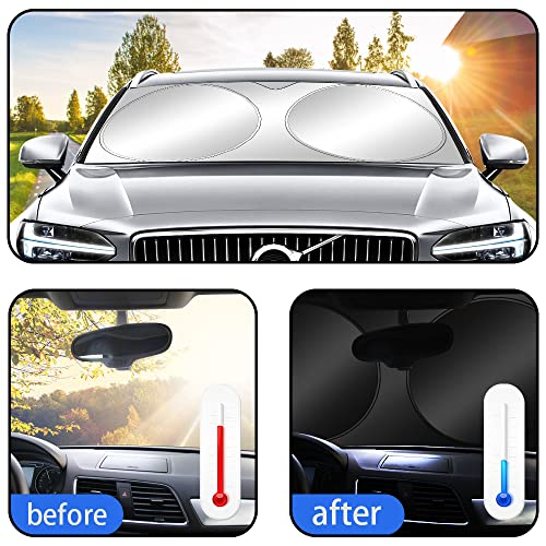 ☀️【Adatto per la maggior parte delle auto】-Il copri parabrezza per auto è 150cm x 70cm, che sono adatti per la maggior parte delle auto. Che tu sia un'auto, un camion, un suv, un minivan o anche un camion, il nostro parabrezza per auto può essere avvolto sul parabrezza per fornirti il massimo grado di protezione solare.Si consiglia di misurare le dimensioni prima de