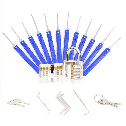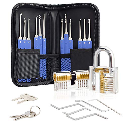 MoEvert Set Fabbro 24 Pezzi Grimaldelli Serrature Set con 2 Trasparente Serratura e Lucchetto Pratica Aprire le Serrature Set