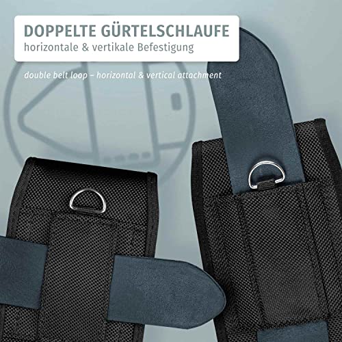 Sicuro, stabile e pratico: un fissaggio è possibile con il moschettone o il supporto per cintura su entrambi i lati - per una tenuta ideale, la custodia protettiva dispone di una chiusura in velcro sicura