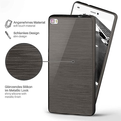 MoEx Cover in Silicone Compatibile con Huawei P8 Lite 2015 | Effetto Alluminio Spazzolato, Nero