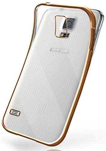 MoEx Cover in Silicone Trasparente Compatibile con Samsung Galaxy S5 / S5 Neo | Bordo Metallizzato, Oro