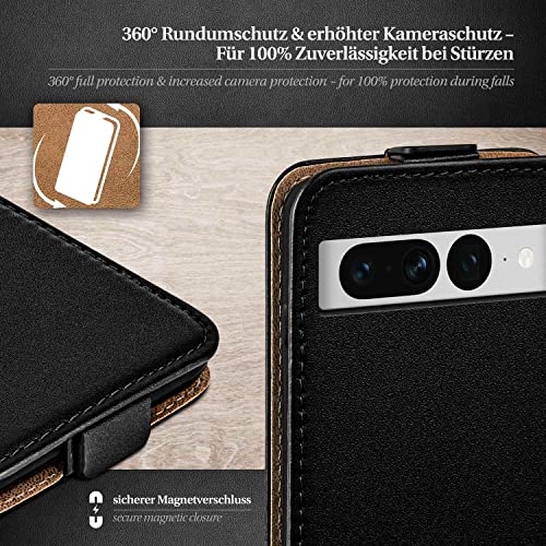 Moex Custodia a libro per Google Pixel 7 Pro, con aletta verticale, magnetica, a 360 gradi, in pelle vegana, colore: nero