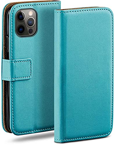 MoEx Custodia a portafoglio per Apple iPhone 12 Pro Max, custodia per cellulare con tasca per schede e carte credito, protezione a 360°, in pelle vegana, Acqua - Ciano