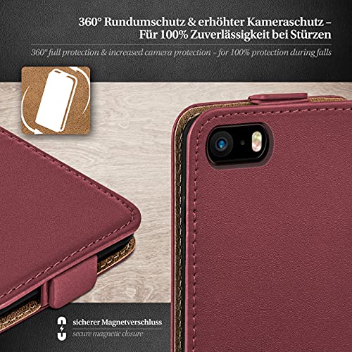 Moex Custodia a Portafoglio per iPhone 5s / 5 / SE (2016), Pieghevole, Protezione Completa a 360 Gradi, Pelle vegana, Custodia per Cellulare con Chiusura Verticale, Magnetica, Marrone - Rosso