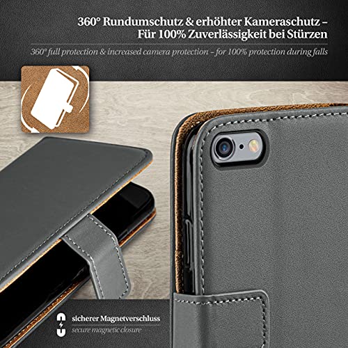 MoEx Custodia a Portafoglio per iPhone 6s / iPhone 6, Custodia per Cellulare con Tasca per schede e Carte Credito, Protezione a 360°, in Pelle vegana, Antracite-Grigio