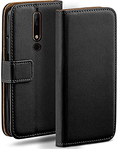 MoEx Custodia a Portafoglio per Nokia 6.1, Custodia per Cellulare con Tasca per schede e Carte Credito, Protezione a 360°, in Pelle vegana, Profondo - Nero