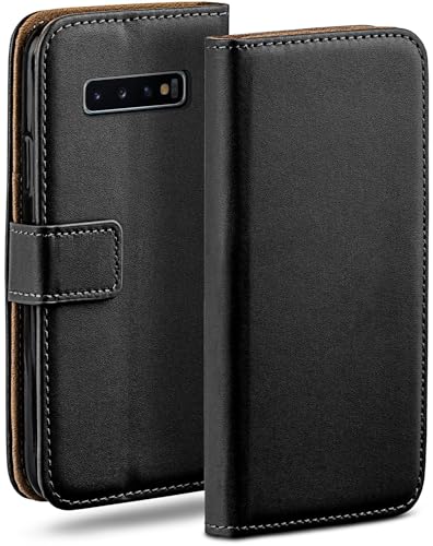 Moex Custodia a Portafoglio per Samsung Galaxy S10, Custodia per Cellulare con Tasca per schede e Carte Credito, Protezione a 360°, in Pelle vegana, Profondo - Nero