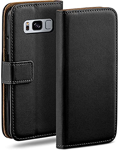MoEx Custodia a Portafoglio per Samsung Galaxy S8 Plus, Custodia per Cellulare con Tasca per schede e Carte Credito, Protezione a 360°, in Pelle vegana, Profondo - Nero
