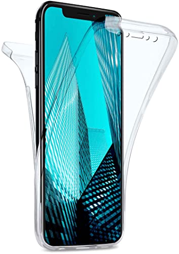 MoEx Doppia Custodia per Apple iPhone X/iPhone XS, Custodia in Silicone Trasparente, Custodia Protettiva Completa su Entrambi i Lati: Anteriore e Posteriore, Cristallo