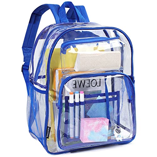 MOFASVIGI Zaino trasparente Impermeabile Heavy Duty zaini scuola trasparente Casual Laptop Zaino grande PVC See Through Bookbag Daybag per lavoro Concerto Sport Stadio Viaggi, Blu, L