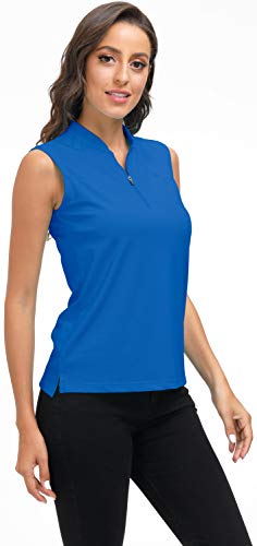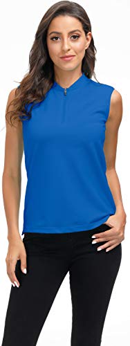 MoFiz Camicia Senza Maniche Donna Camicetta Golf Polo Shirt Estiva Top Traspirante con Cerniera Blu Mare XS