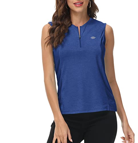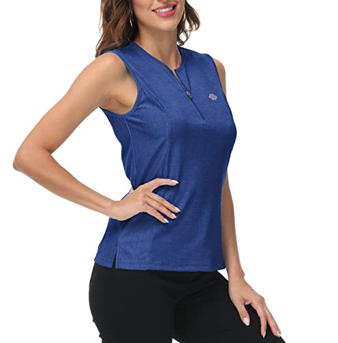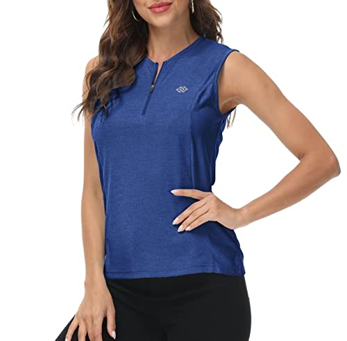 MoFiz Donna Senza Maniche Maglietta Canottiera Camicia Golf Tennis Estiva Traspirante con Cerniera Blu XS