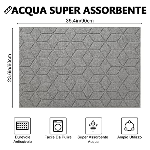 【ASSORBISCE L'UMIDITÀ E LO SPORCO】I zerbino ingresso interno utilizzano materiali in microfibra di alta qualità, in grado di assorbire rapidamente l'umidità e di raschiare lo sporco. È possibile utilizzarlo per mantenere il pavimento e le scarpe pulite e proteggere la casa da acqua, polvere, graniglia, fango, sabbia, erba, fanghiglia, pioggia o neve. Lo zerbino è perfetto come tappetino per la porta d'ingresso, tappetino di benvenuto, tappetino per le scarpe o tappetino d'ingresso.