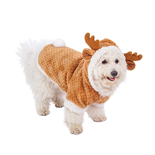 Mogokoyo Abbigliamento per cani di Natale e renna, costume per cane, marrone chiaro, con cappuccio in poliestere, caldo, in autunno e inverno, per animali domestici (mall)
