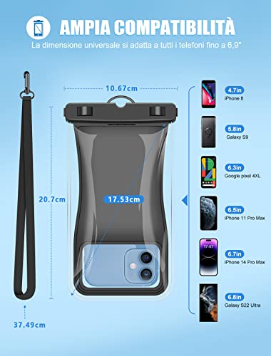Mohard Custodia Impermeabile Smartphone Galleggiante, [2 Pezzi] Universale IPX8 Cover Subacquea per Immersioni, Compatibile con iPhone 15 Pro Max/14 Pro/13, Galaxy e Altri Smartphone Fino a 6,9"