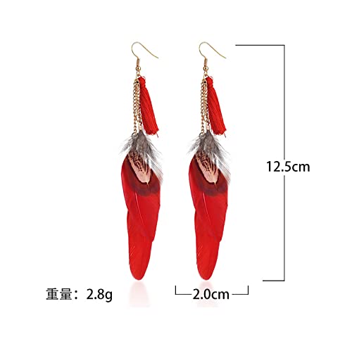 MoHHoM Orecchini di Piume per Le Donne - Nappa Lunga Stile Etnico Orecchini Pendenti per Ragazze, Gioielli di Fascino Ipoallergenico Bohémien, Regalo Personalizzato per Signora, Nero, Taglia Unica