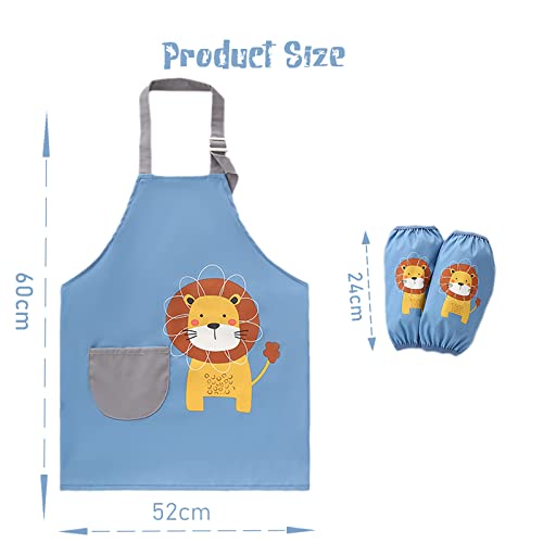 Mohito Grembiule Cucina Bambini Regolabile Bambino Grembiuli e 2 Maniche Leone Cartone Animato Bambini Grembiule con Tasche per Cottura Cottura Pittura 8-12 Anni