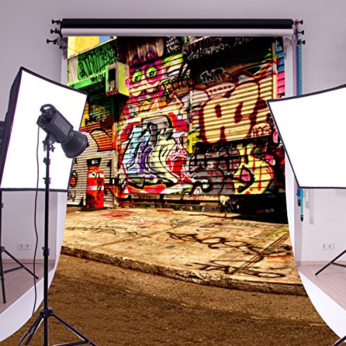 Mohoo - Set fondale fotografico in tessuto da 1,5 x 2,1 mt circa, materiale: seta, Tema sfondo: graffiti su muro, ideale per bambini, scenografia da studio