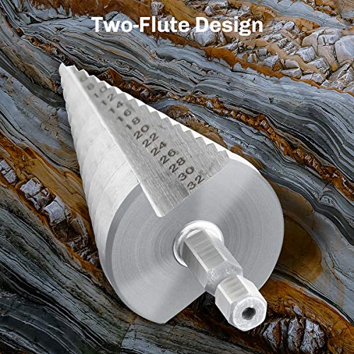 【Uso】: Perfetto per la casa fai da te e l'uso generale di ispezione / ingegneria edile. Il trapano a gradino può essere utilizzato per molti materiali diversi come acciaio, ottone, legno, plastica, rame, fibra di vetro e PVC, ecc.